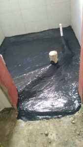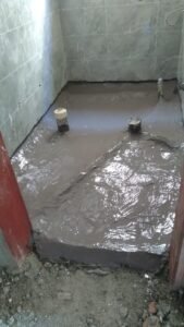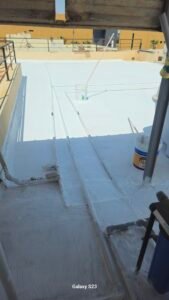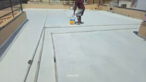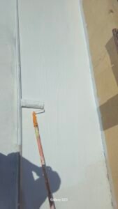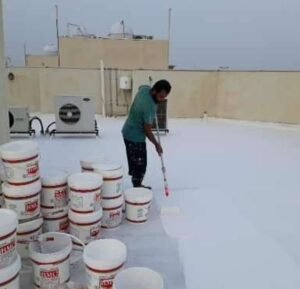 6- يقوم الفنيين بدهان الارضية بالايبوكسى الذى تم تحضيره بواسطة الرولة.